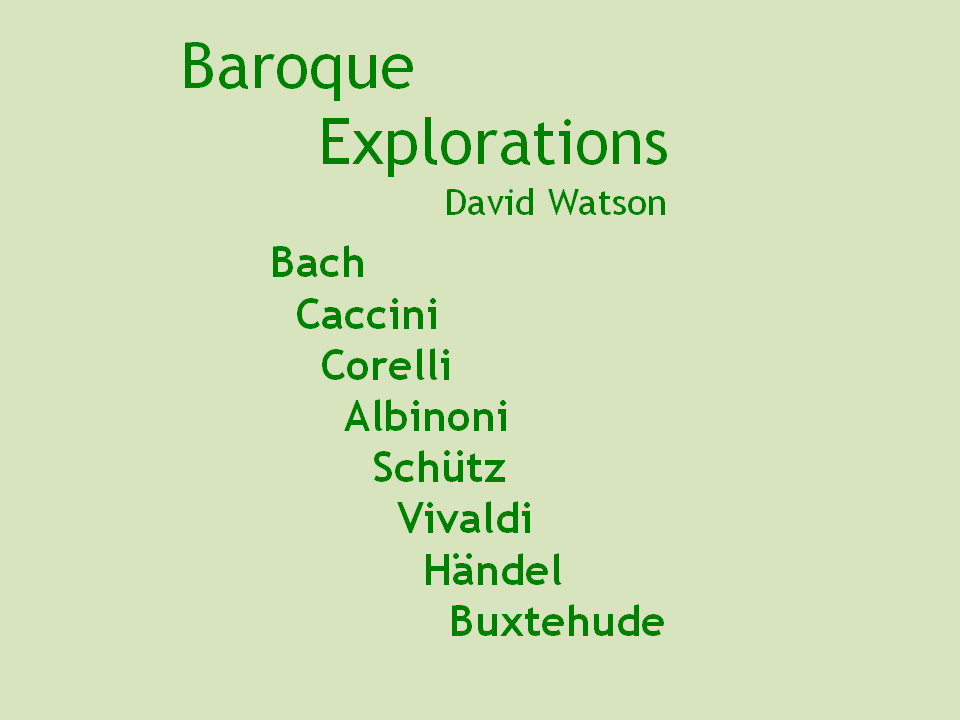 The thirteen tracks on this CD cover a wide range of Baroque music. Some are straightforward transcriptions for a variety of instruments and others are jazz-style arrangements with some improvised passages mixed with the original parts.