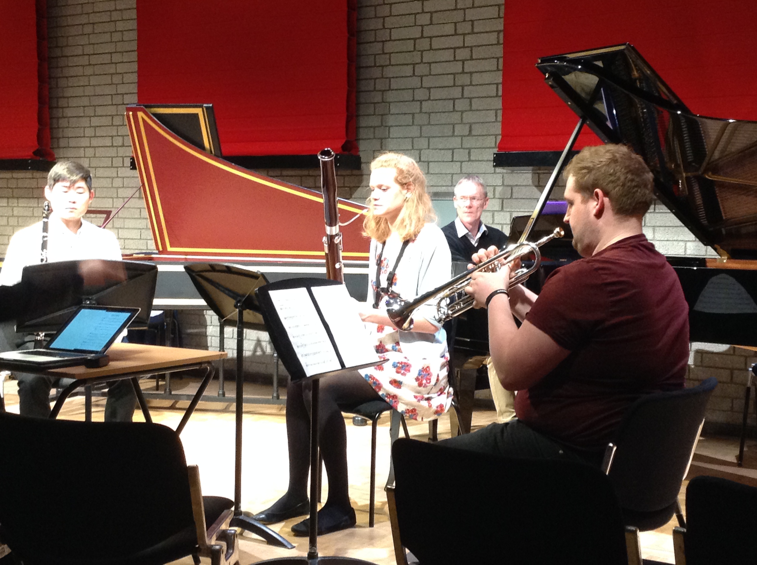 The balance of instruments (oboe, two violas, cello and….tuba!) gave John a satisfying challenge